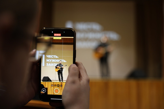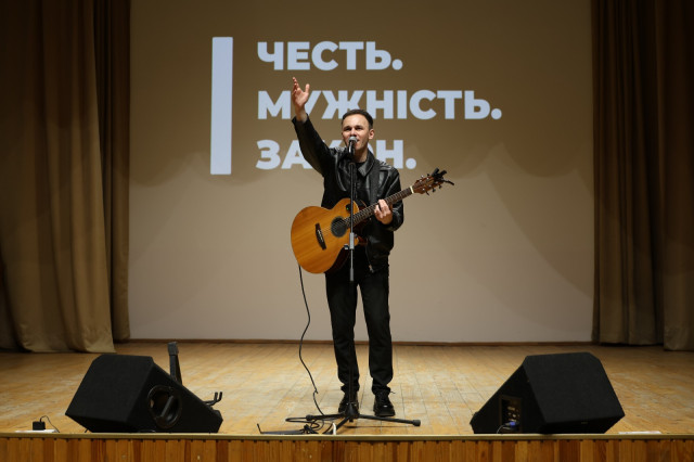 Виконавець патріотичних пісень Володимир Пастушок (позивний «Пісня») розповів молоді про свій шлях від музиканта й учасника Революції Гідності до добровольця та бійця Національної гвардії України.
