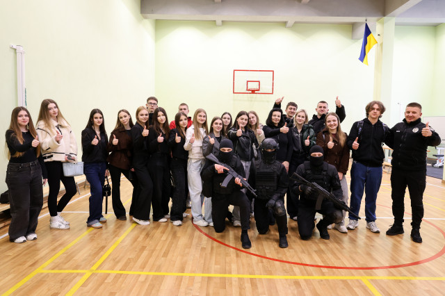 Далі учні вирушили до ветеранського хабу та спортивного комплексу. Тут з ними поспілкувався завідувач кафедри тактико-спеціальної підготовки Мар'ян Курляк, який розповів, як проходить навчання курсантів. Завершилась зустріч яскравими показовими виступами вихованців вишу.
