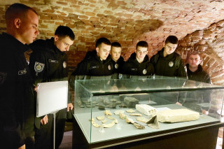 Першим пунктом подорожі стало знайомство з історичним серцем Львова – підземеллями колишнього костелу єзуїтів. Підземні зали, які сягають часів княжого Львова XIII століття, вразили курсантів своєю атмосферою та унікальними артефактами. Екскурсія дозволила учасникам відчути дух давнього міста та доторкнутися до його легенд, відтворених у панорамних зображеннях Львова XIII, XVI і XVIII століть.