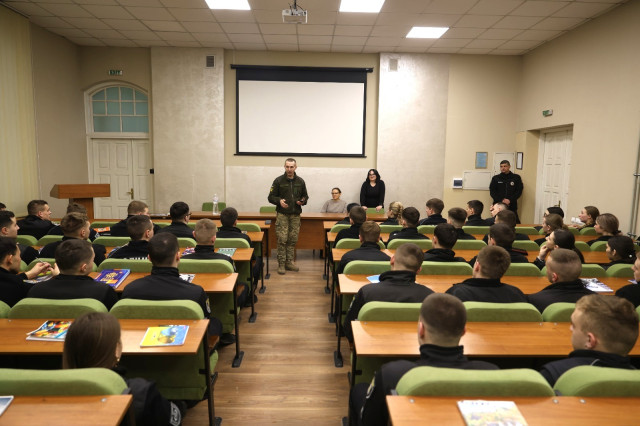 Курсанти Львівського державного університету внутрішніх справ мали нагоду поспілкуватися з Євгеном Кузьменком, заступником командира загону з психологічної підтримки персоналу Житомирського військового інституту імені Сергія Павловича Корольова.