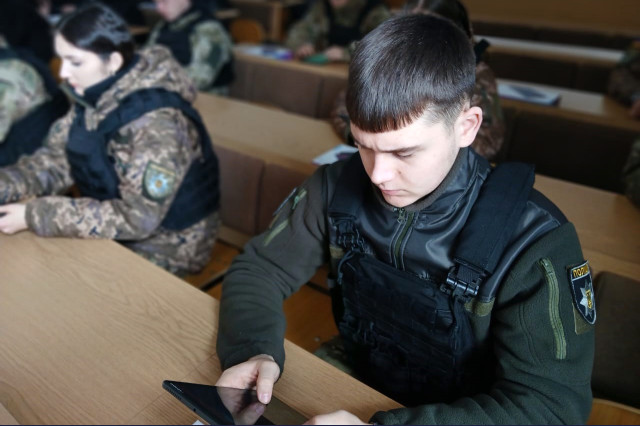 Майбутні правоохоронці тренувалися керувати дронами на симуляторах, відпрацьовуючи навички пілотування у різних умовах.