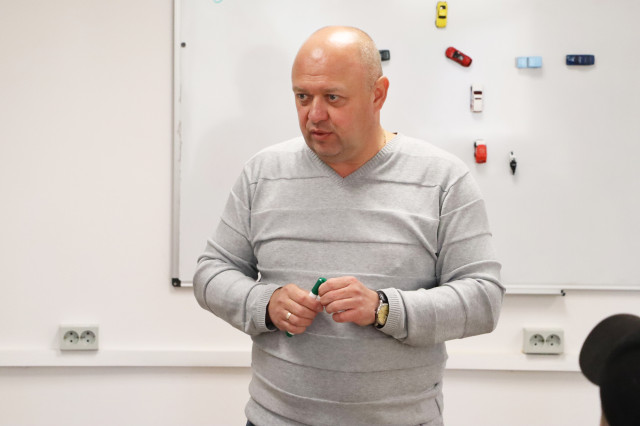 «Ми маємо дуже гарну співпрацю з університетом і, за можливості, долучаємо наших хлопців, аби вони спробували керувати автомобілем, переобладнаним під їхні потреби. Таким чином ми також повертаємо їх у соціум», – говорить Герман Золотарьов, експерт із соціальної реінтеграції ветеранів центру Superhumans, який також навчається у Безбар'єрній автошколі.