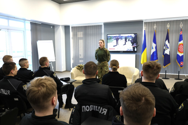 З нагоди Міжнародного дня боротьби за права жінок у Львівському державному університеті внутрішніх справ відбулася зустріч курсантів із військовослужбовицею, бойовою медикинею 12-ї бригади спеціального призначення «Азов» Тетяною Бугай – однією із захисниць «Азовсталі».