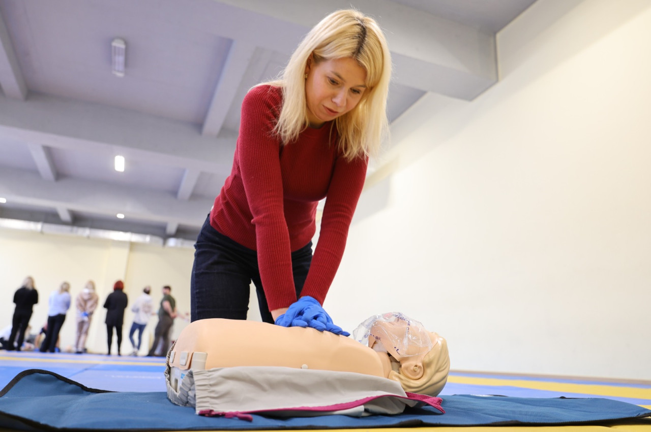 Вони продемонстрували, як проводити серцево-легеневу реанімацію та як діяти в інших ситуаціях, коли постраждалому потрібна термінова допомога.