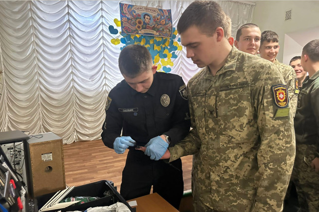 Жвавий інтерес у ліцеїстів викликала демонстрація валізи криміналіста. Курсанти показали спеціальне обладнання, яке використовують під час огляду місця події, пояснили, як правоохоронці фіксують сліди та збирають докази. Учні змогли побачити інструменти, якими користуються криміналісти, та дізнатися більше про особливості їхньої роботи.